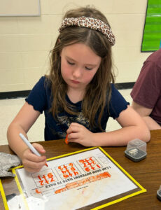 Cora works diligently on her math skills during Project Learn programming!